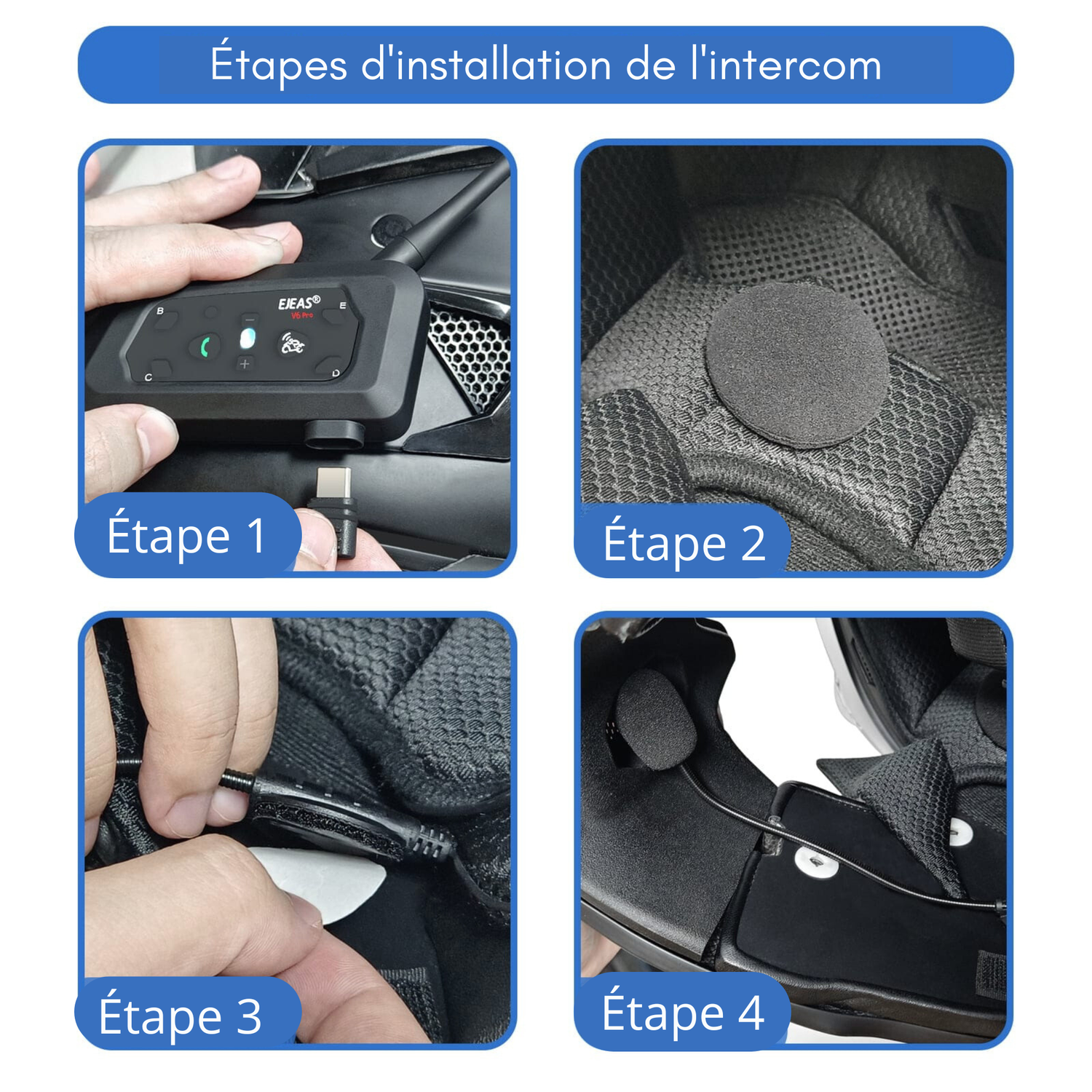 Le EJEAS V6 Pro+ se fixe en quelques minutes sur n’importe quel casque.